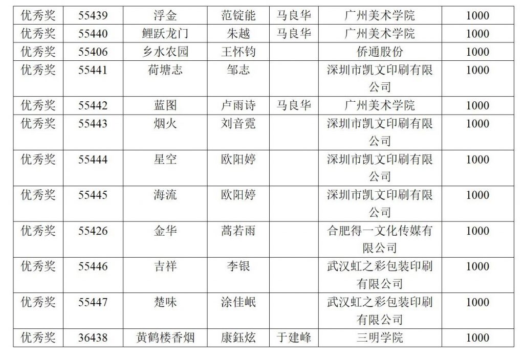 組委會定評和企業定評考量方向有別,組委會定評的獲獎者不代表企業定評結果也有。組委會定評的結果遠多于企業定評獲獎結果,作者獲得獎勵獎金是由企業定評結果決定的,獎勵獎金的獎項、名額、獎金金額等均依照企業定評獲獎公布的名單為基準頒發,也就是依照企業定評的結果頒發,其他獲獎但沒有在企業定評結果名單中的都是組委會定評結果,沒有獎金。企業定評結果對應的獎勵獎金為稅前金額,頒發的金額以繳稅后實際金額頒發。獎勵獎金由命題企業頒發或委托組委會代辦頒發。黃鶴樓包裝設計命題的獎勵獎金頒發由企業自主頒發企業定評獲獎結果獎勵獎金。